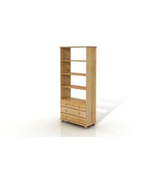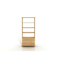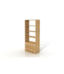 Drewniany regał zapewni klasyczny i ponadczasowy styl. Regał posiada półki i 3 szuflady, dzięki czemu łatwiej utrzymać ład i porządek. Ponadto, rolkowe prowadnice znacznie ułatwią zamykanie i otwieranie. Doskonale pasuje do pokoju nastolatka czy biura. Konstrukcja mebla jest wykonana w 100% z drewna sosnowego. Wersja wąskiego regału jest zaprojektowana z myślą o małych, ale przytulnych i dobrze zagospodarowanych wnętrzach.